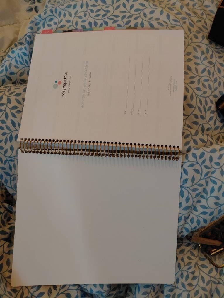 Every 8.5×11 weekly planner is printed and bound by hand in Vancouver using thick, high-quality paper and a strong metal coil. Personalized covers, crisp printing, and precise trimming give you a desk-ready planner with a polished, professional finish.